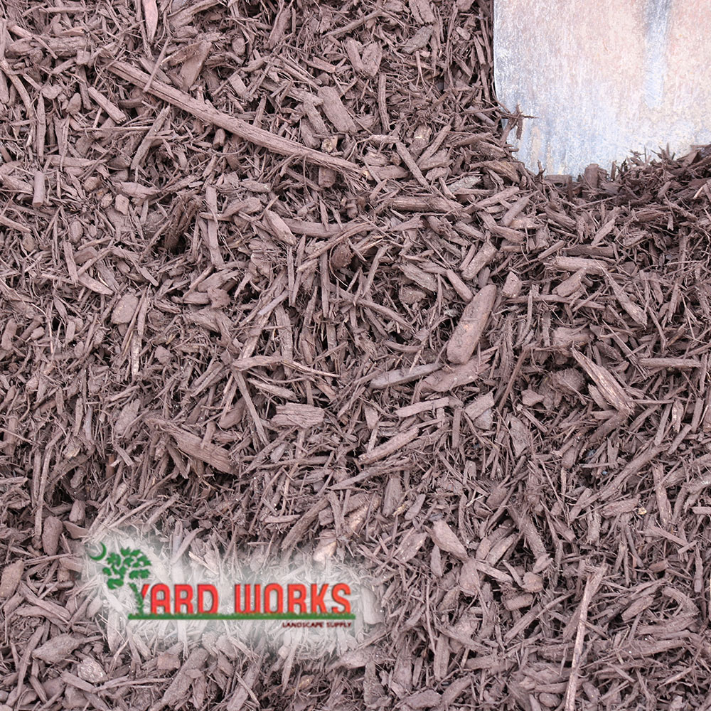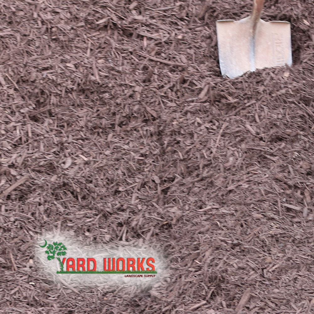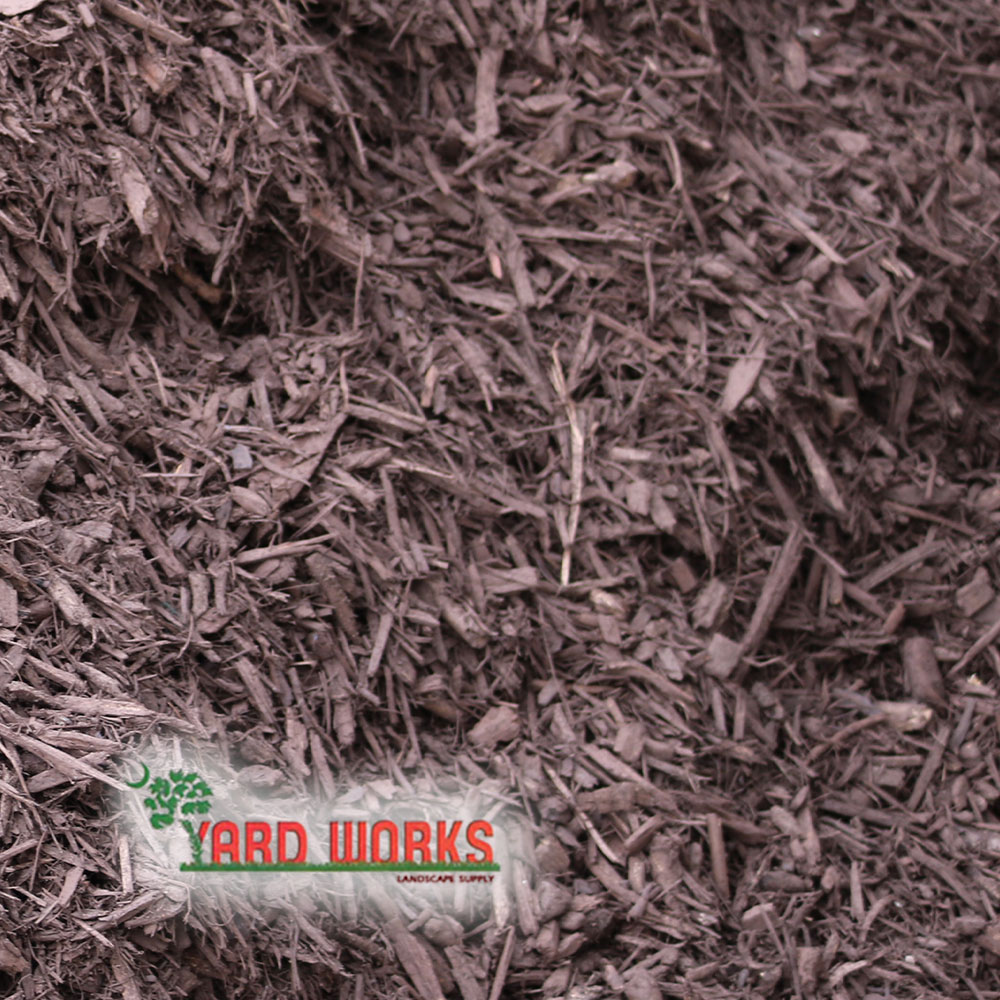 YW Brown Dyed Mulch is made from a mix of hardwoods and has great texture. It is ground so the pieces are finer.